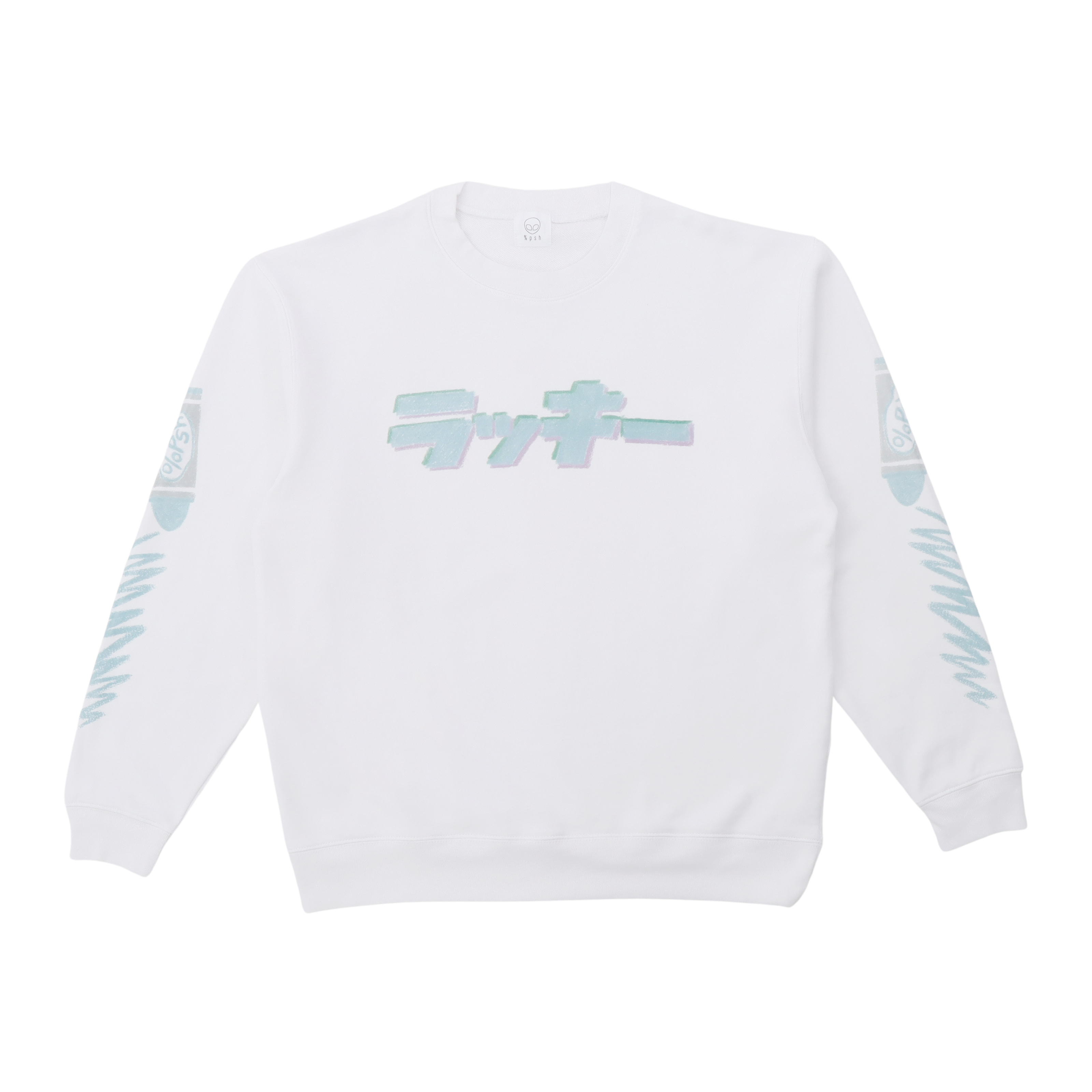 ITEM:%psh ラッキー sweat COLOR:WHITE SIZE:S / M / L / XL PRICE:¥8,800(税込)
