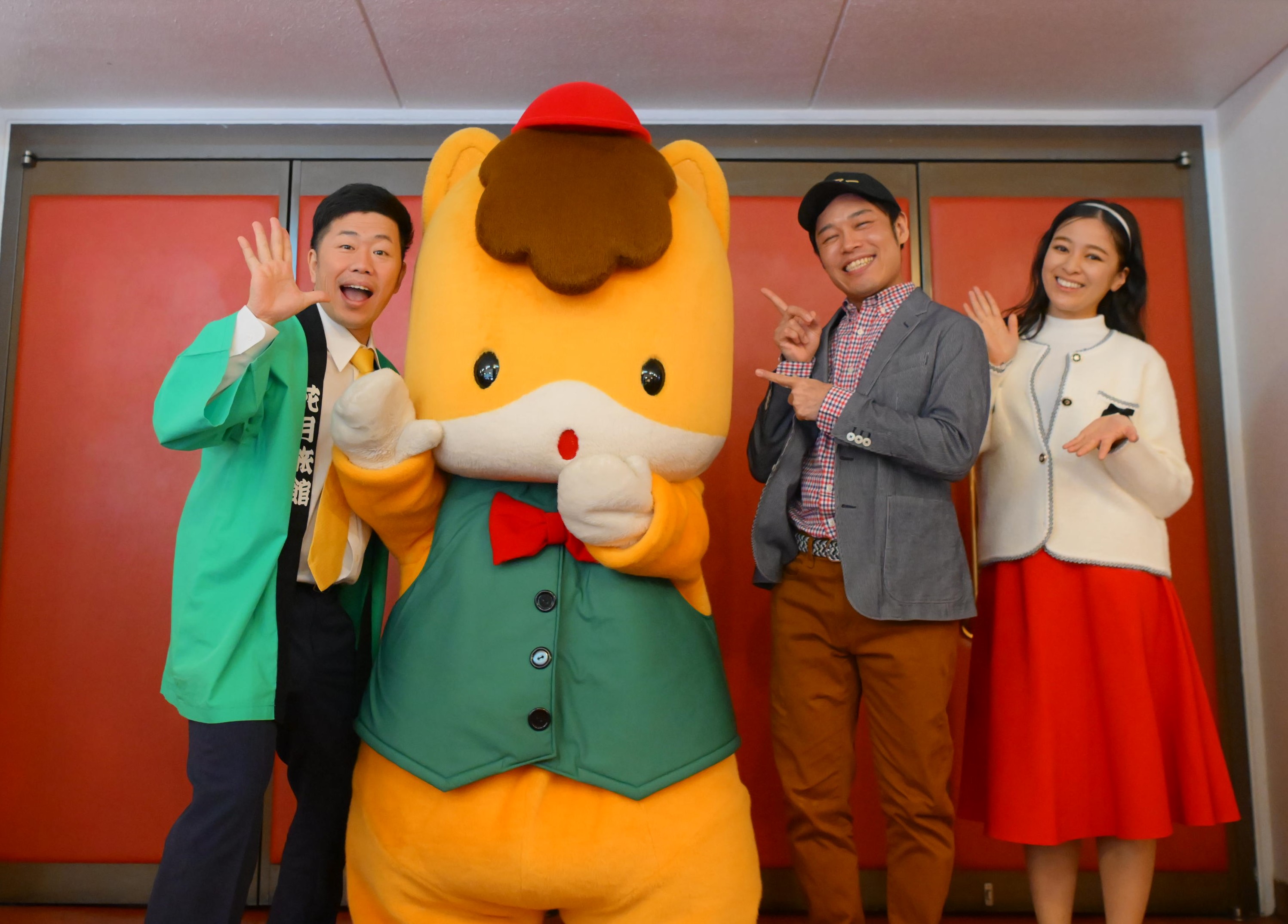当日は地元メディアも入り、祇園花月のロビーから取材がスタート。舞台上では吉田のほか、小林ゆう、群馬県太田市出身の筒井亜由貴と一緒に稽古します。ぐんまちゃんはまず、吉田たちとハイタッチ。吉田はその姿を見て「めちゃめちゃかわいいやん!」と笑顔です。