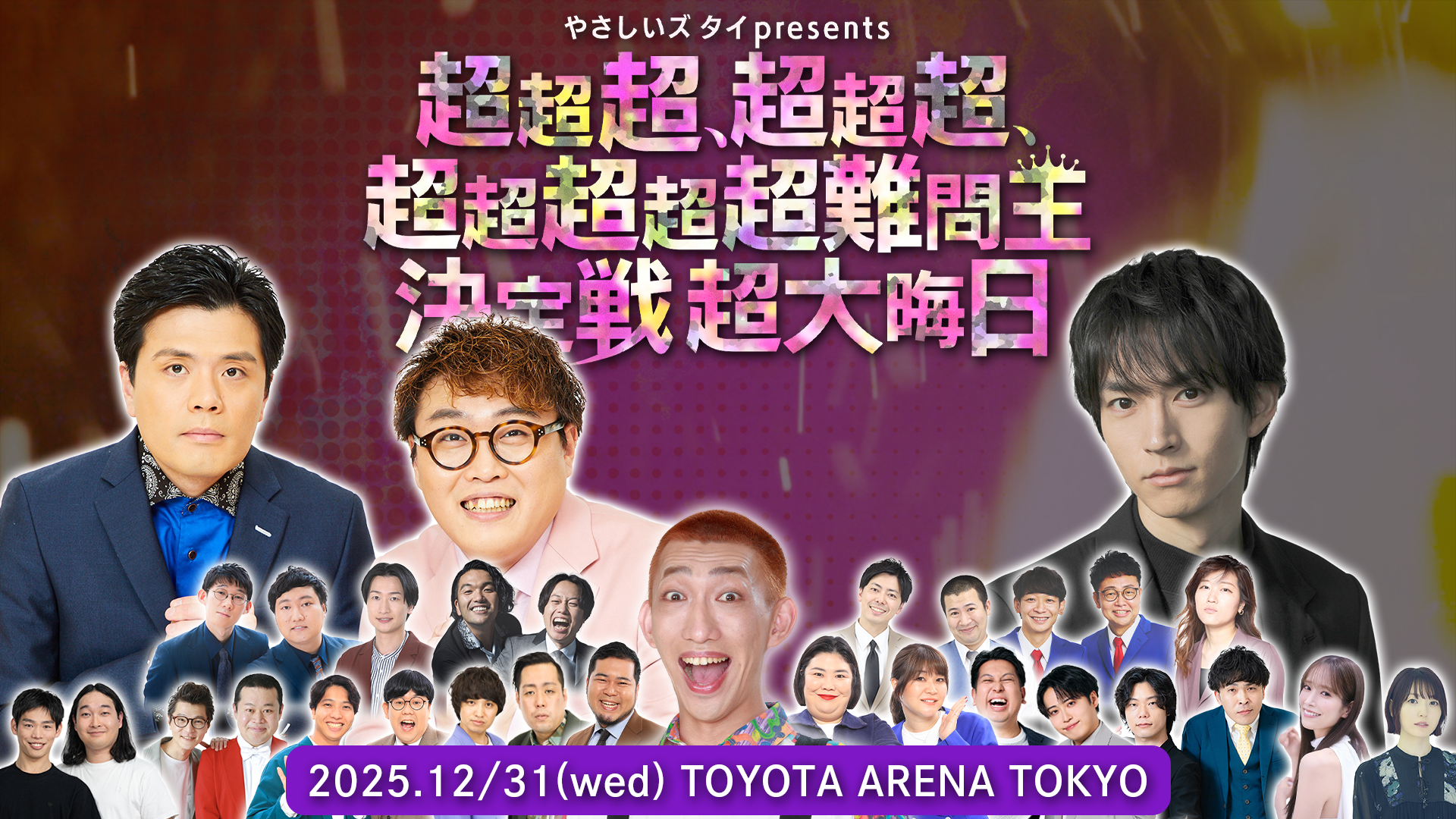 2025年12月31日(水)にTOYOTA ARENA TOKYOにて、「やさしいズタイpresents『超超超、超超超、超超超超超難問王決定戦 超大晦日』」が開催されます。このたび、追加出演者が決定しました。
