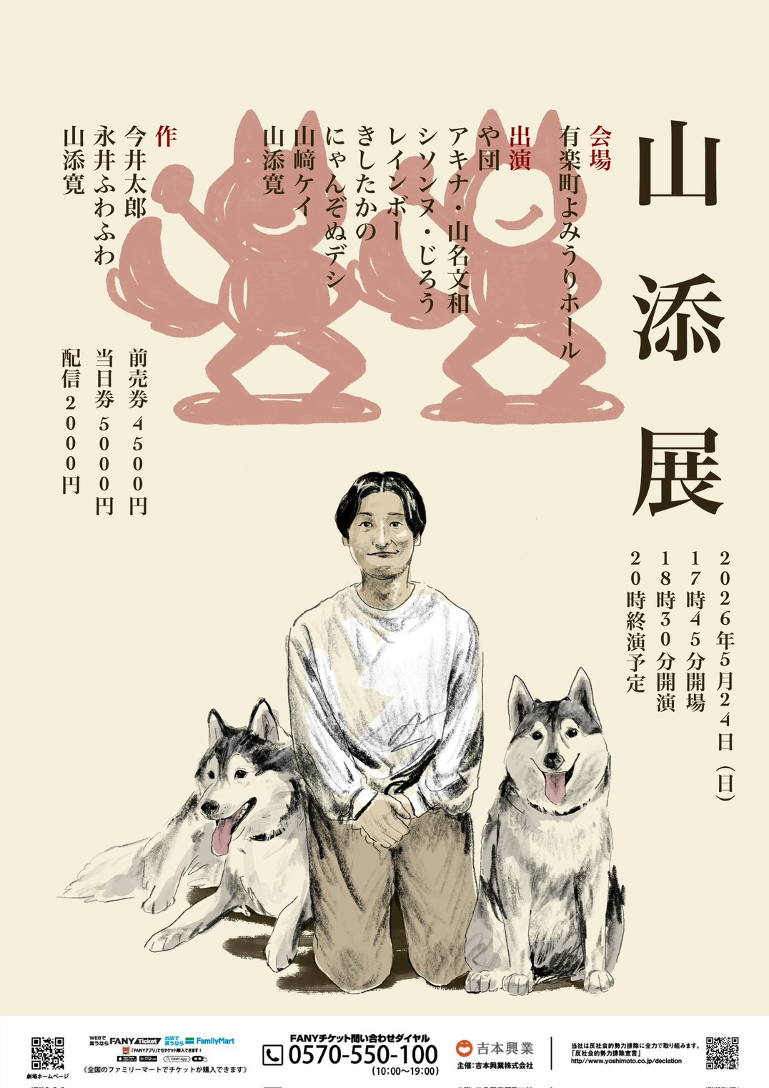 2026年5月24日(日)、有楽町よみうりホールにて、相席スタート・山添寛の主催ライブ『山添展』が開催されます 。